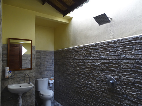 Durante nuestro paso por Sidemen nos quedamos alojados en Pondok Indah Sidemen y estuvimos muy bien. Una familia encantadora que tiene para alquilar dos habitaciones amplias, cuidadas y ofrecen una atención exquisita. El entorno es muy agradable y el baño exterior privado, incluye desayuno y te dejan escoger entre americano o balinés. Nosotros escogimos un día de cada, aquí puedes ver el desayuno balinés: