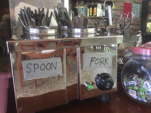 Como curiosidad verás que los cuchillos escasean en Filipinas y es que usan tenedor y cuchara para comer. Al principio parece extraño pero al final te acabas apañando.