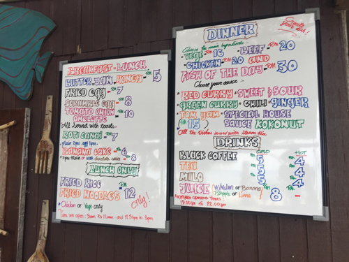 - Pakya Seaview Chalet and Resturant tiene una carta variada, como ya he comentado tiene los zumos naturales más baratos de la isla y es el único que sirve comida más allá de las 21.30pm.