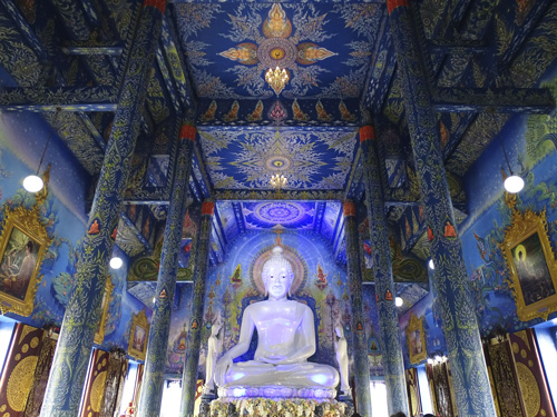 Es uno de los templos más populares. No es muy grande pero es realmente precioso, vale la pena observar todos sus detalles. Tanto el interior del templo como el exterior es para disfrutarlos con tranquilidad. El templo es conocido como Wat Rong Suea Ten pero se ha popularizado como el templo azul de Chiang Rai.