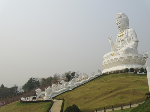 La estrella de este recinto es un Buda gigante de color blanco con unas escalinatas de dragones preciosas. Se puede subir a la cabeza del Buda pagando una entrada ya que el resto del recinto es gratuito. Desde lo alto disfrutarás de increíbles vistas de toda la región. No te olvides de ver una pagoda y un templo blanco que hay en el mismo recinto.
