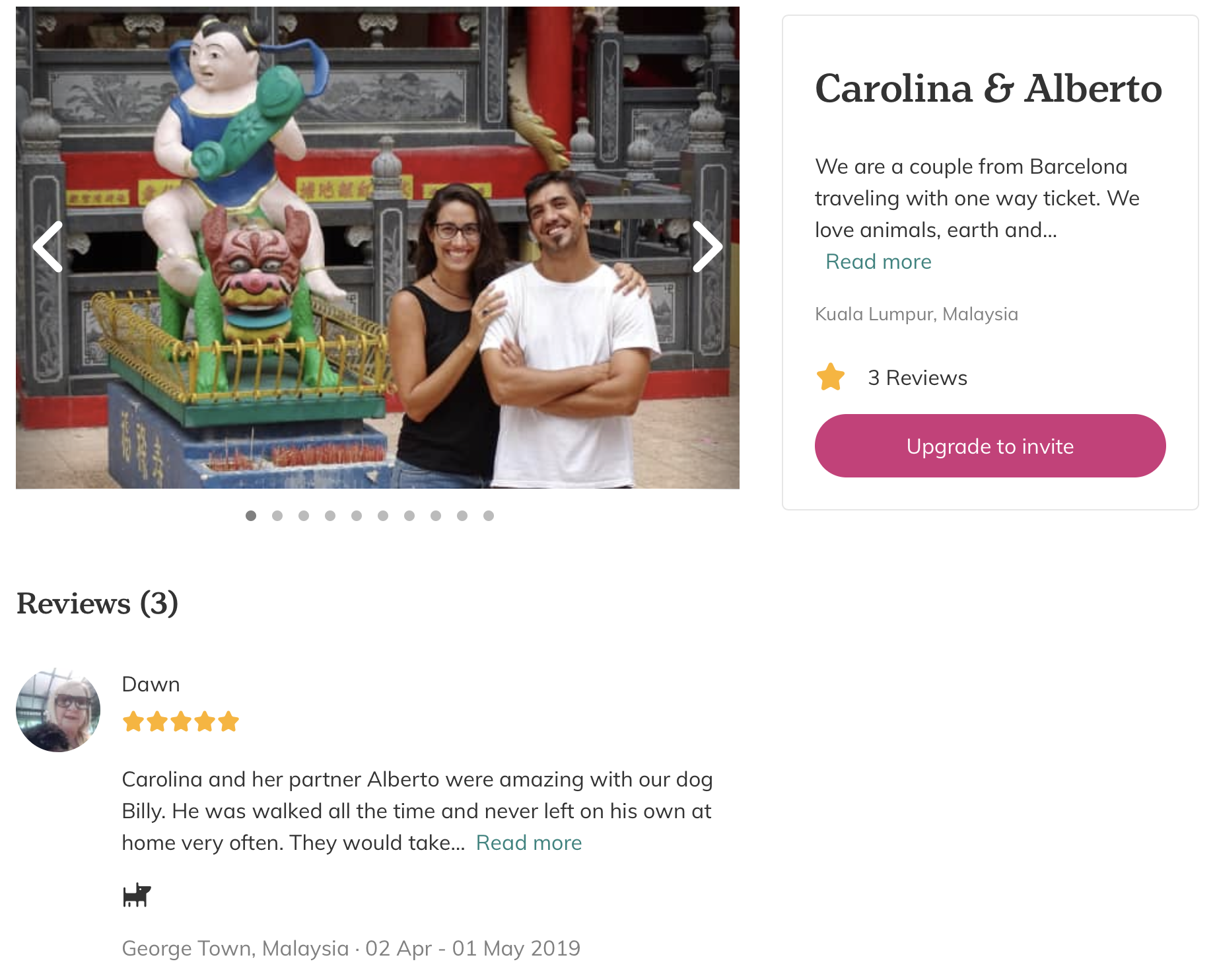 Con el usuario simple se pueden hacer consultas de anfitriones sin límite y con el usuario de pago se puede enviar mensajes para postular a una estancia. Así que si quieres probar esta nueva forma de viajar o, incluso de vivir, no dudes en pagar la cuota de entrada que amortizarás de sobra con una sola estancia como cuidador de mascotas. Realmente la cuota ya es una buena barrera de entrada, quién la paga sabe que es una inversión que, probablemente, con una única experiencia de cuidador será compensada. Y los propietarios saben que las personas que les escriben ya han pasado esta barrera inicial con la intención de entrar a formar parte de esta nueva forma de viajar.