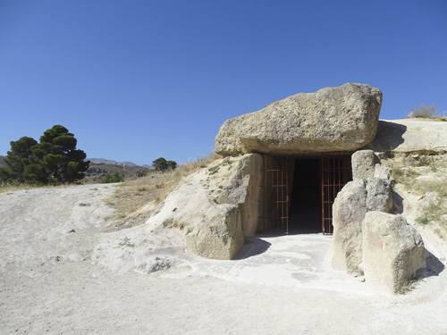 Aquí se encuentran un conjunto de tres monumentos que forman el Conjunto Arqueológico de Dólmenes de Antequera: dolmen de Menga, dolmen de Viera y tholos de El Romeral. Estos son monumentos megalíticos de gran importancia histórica universal fueron construidos entre 3.700 y 2.200 antes de Cristo. Son arquitecturas simples a nuestros ojos pero que fueron obras titánicas en su época. Bloques de piedra inmensos movidos y trabajados por el hombre sin ningún tipo de ayuda. Se cree que tenían una función funeraria. Realmente se pone la piel de gallina cuando estás dentro de ellos, pensando en lo que fueron y que son una huella del paso del hombre por la Tierra que ha sobrevivido a cientos de años.