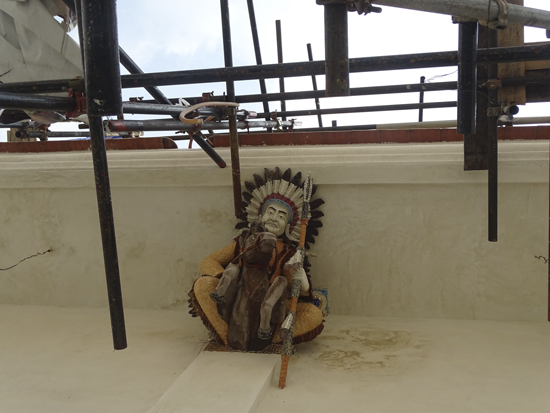 El templo en construcción, ubicado a la derecha desde la entrada, también apunta maneras. Pudimos ver los personajes que habitan en la parte superior de cada columna: egipcios, indios americanos, africanos, Che Guevara.
